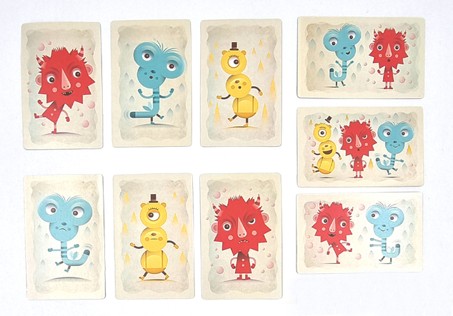 Se da vuelta una carta, si contiene un monstruo del color del dado, puede llevarse la carta y terminar el turno, o puede elegir seguir el juego y dar vuelta otra carta, siempre que contenga el monstruo, se puede seguir, pero a no forzar mucho la suerte, que puede fallar y si das vuelta un monstruo de otro color, no te llevarás nada y todas las cartas se vuelven a dar vuelta. A usar la memoria y recordar donde está cada monstruo, así en tu turno te llevás mas cartas!